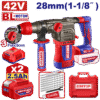 | Động cơ không chổi than Điện áp: 42V Tốc độ không tải: 0-900 vòng/phút Tỷ lệ va đập: 0-4400bpm Năng lượng va đập: 4,5J Khả năng khoan tối đa: Bê tông: 28mm Thép: 13mm Gỗ: 40mm Hệ thống đầu cặp SDS Plus Đèn làm việc LED tích hợp Bao gồm: 3 mũi khoan (8,10,12mm),1 mũi đục,1 ống mỡ,1 cờ lê 2 pin 2,5Ah (EBPK42251) 1 bộ sạc (EFCR42021) Đóng gói bằng hộp đựng |