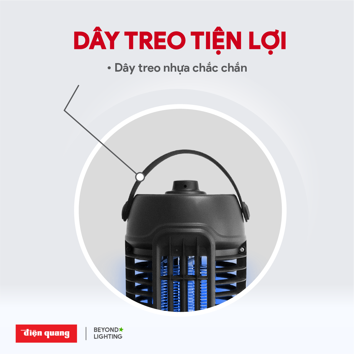 - Đèn bắt muỗi và côn trùng Điện Quang được thiết kế với cấu trúc chắc chắn có quai xách thuận tiện cho việc di chuyển.