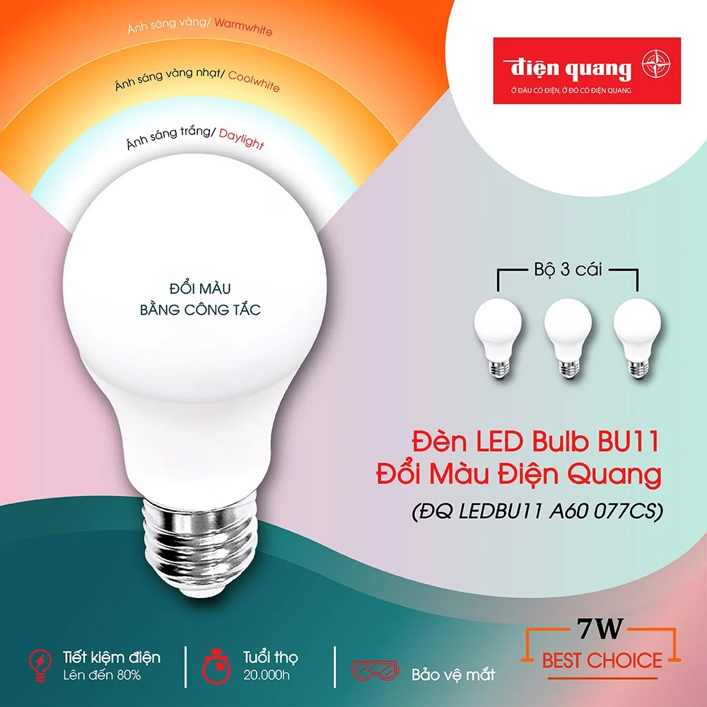 Đèn Led Bulb BU11 đổi màu Điện Quang ĐQ LEDBU11A60 077CS (7W, đổi màu bằng công tắc)