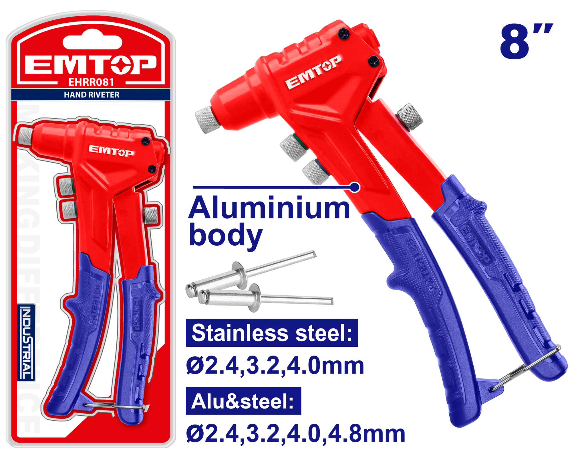 Áp dụng cho đinh tán thép không gỉ, nhôm và thép