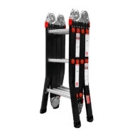 Ngoài những tính năng đã nêu ở trên, còn một đặc điểm mới lạ giúp thang trở nên sản phẩm “biến hình” cực kỳ tinh vi. Nếu bạn cần một giàn giáo nhỏ để sử dụng thì chỉ cần rút thang lồng bên trong ra làm 2 thang. Ở nửa bên ngoài, ta móc chốt khóa vào để cố định chân thang một cách chắc chắn. Dùng một bệ nhôm hoặc một ván gỗ để ở giữa hai chân thang sẽ là một nơi làm việc an toàn. Bạn có thể thoải mái di chuyển và làm việc hiệu quả hơn mà không mất thời gian dịch chuyển thang.